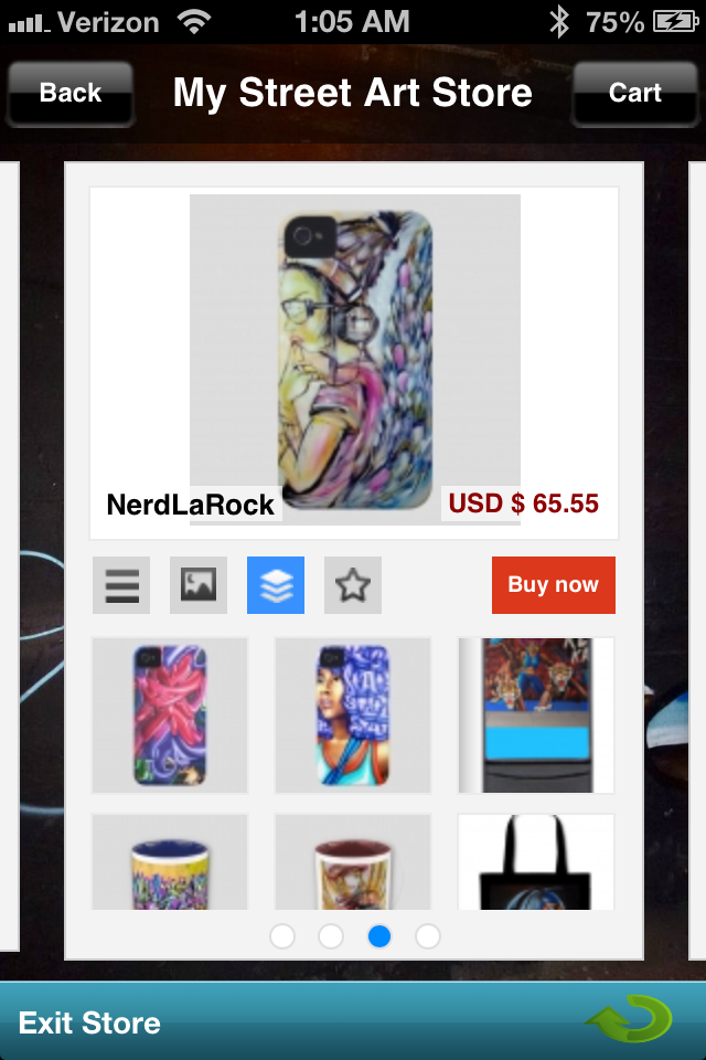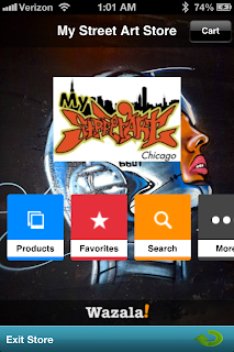 Sneak Peak at screen shots of the store feature within the app. Here you can scroll through and acquire anything from prints to iPhone cases adorned with Chicago street art images. Support your local Street Artist. (Sylsa)
